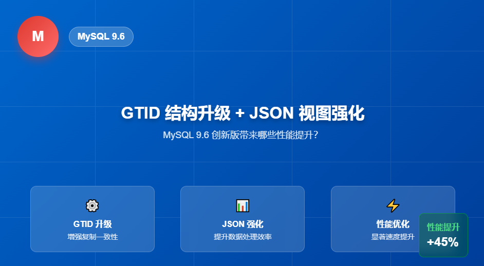 2026年1月20日MySQL 正式发布了 9.6.0 版本,作为一次“创新发布”,该版本在安全性、性能、可维护性和容器化支持等方面带来了多项重要更新。无论是企业级用户还是开发者,都能从中感受到 MySQL 在现代化数据库管理方面的持续进步。