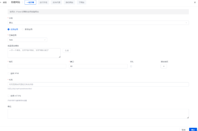 1:网站时选择一键部署。
