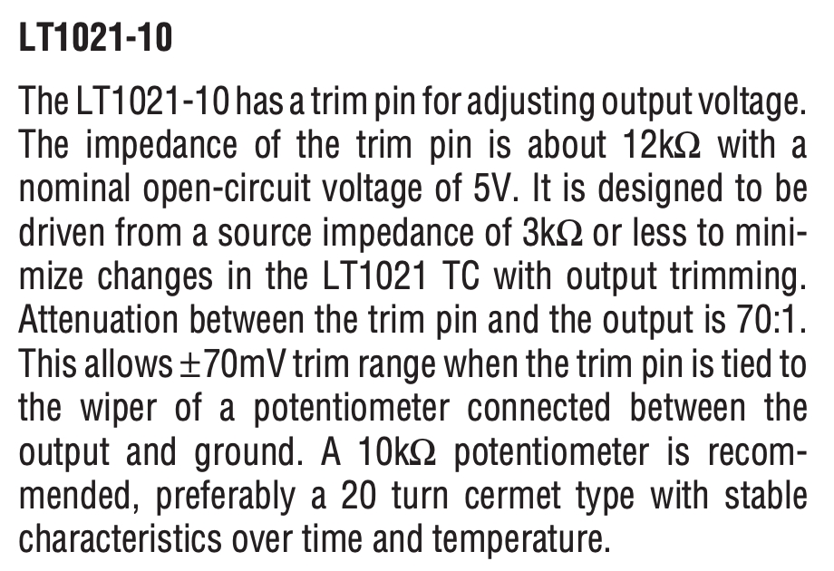 The 7V version of the LT1021 has no trim pin because the internal architecture does not have a point which could be driven conveniently…