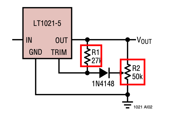 the output of the LT1021 can be loaded with a trim potentiometer