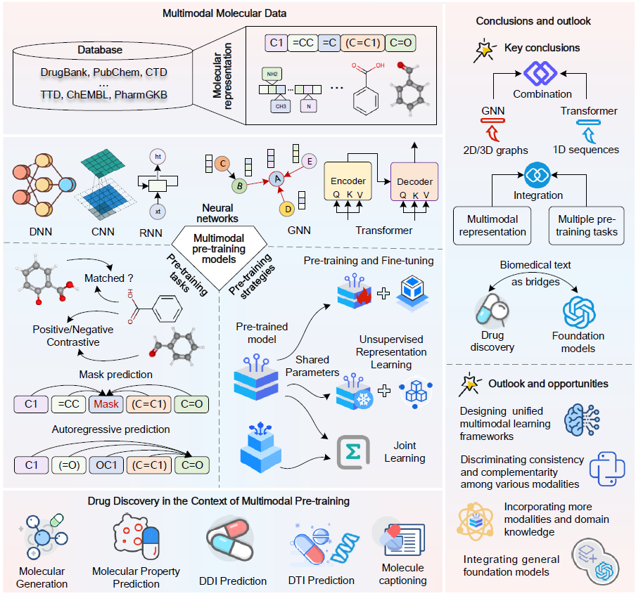 西北工业大学尚学群、王小奇、湖南大学彭绍亮等在National Science Review期刊发表综述文章Multimodal Pre-training Models of Molecular Representation for Drug Discovery,对多模态预训练模型在药物发现领域的应用和发展进行了系统总结。