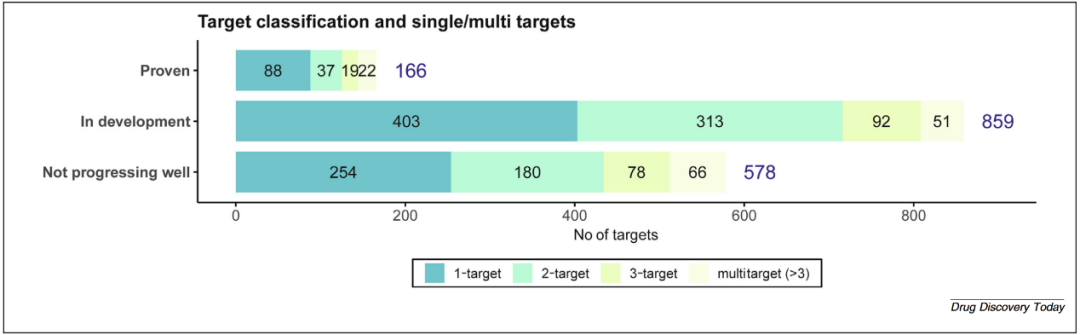 图1 肿瘤靶点分类及单靶点/多靶点分布