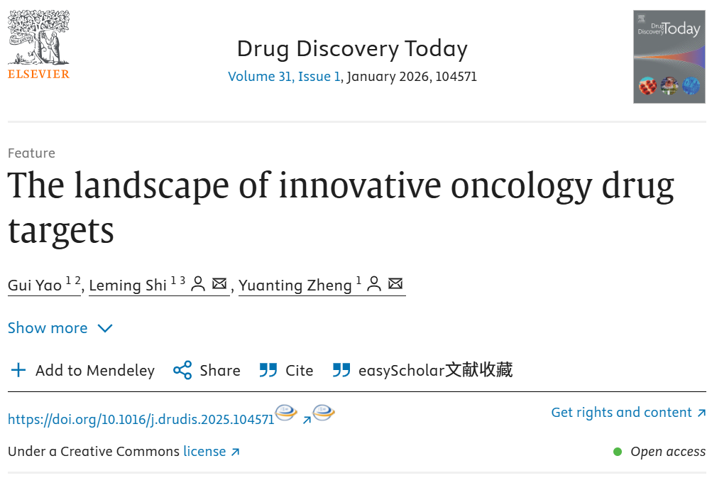 为弥补这一不足,复旦大学石乐明与郑媛婷团队于2025年12月4日在《Drug Discovery Today》上发表综合性解读文章,题为“The landscape of innovative oncology drug targets”。