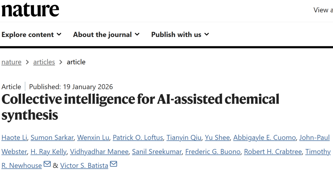 Li, H., Sarkar, S., Lu, W. et al. Collective intelligence for AI-assisted chemical synthesis. Nature (2026).