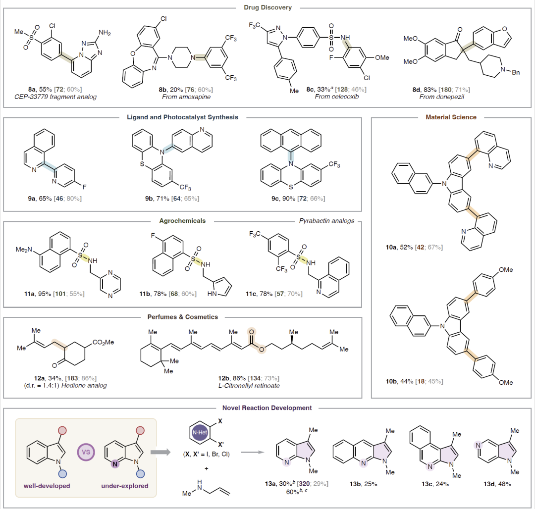 图4|MOSAIC 指导下的新化合物合成与方法学拓展示例。