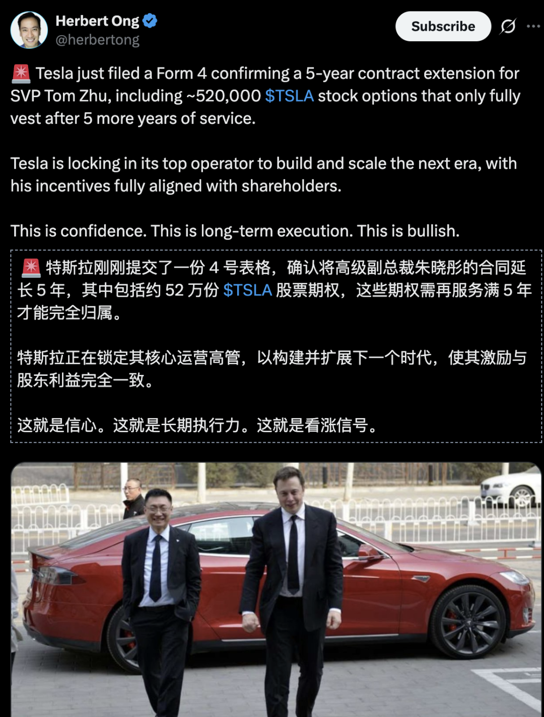 它向外界释放明确信号:特斯拉不仅有马斯克的远见,还有朱晓彤的执行;不仅有宏图,也有落地的人。