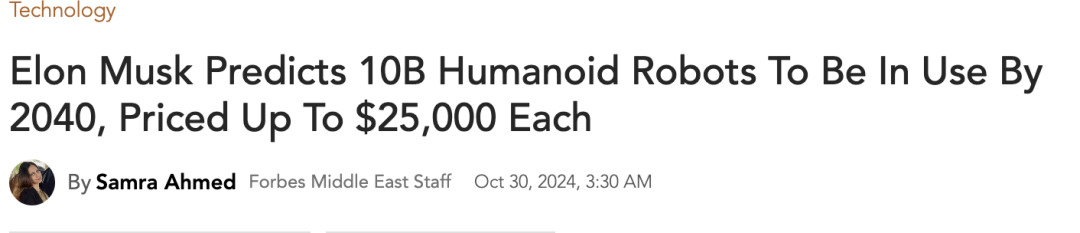 马斯克曾预测,到2040年人形机器人数量会超过人类,Optimus将贡献特斯拉80%的价值,营收达到10万亿美元。