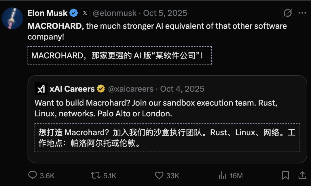 马斯克本人关于xAI的发言(其中还提到Macrohard正在研发「人类模拟器」,相关推文已有超1100万次浏览)、以及xAI的招聘信息。