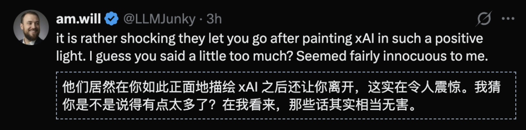 如果因为播客,他被开除,这说明xAI的文化肯定有问题,xAI这种处理不太好看。