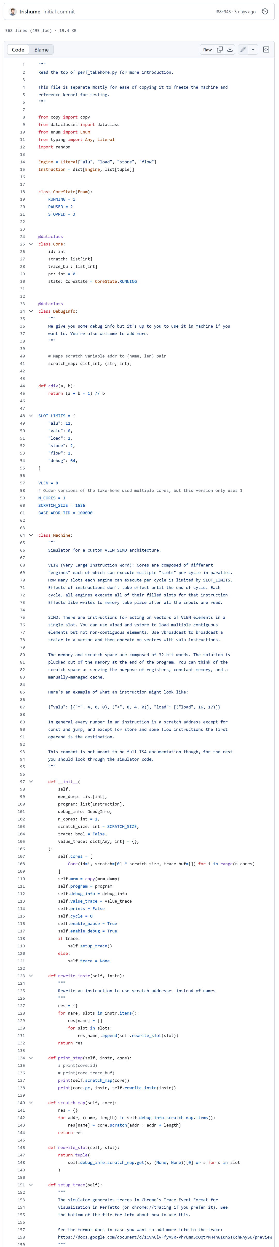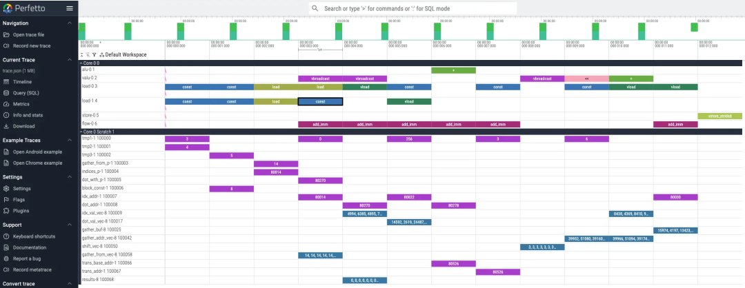 候选人需要优化在这台机器上运行的代码,并通过一个支持热重载的Perfetto trace来观察执行过程,该trace会展示每一条指令,效果类似公司在Trainium上使用的工具链。