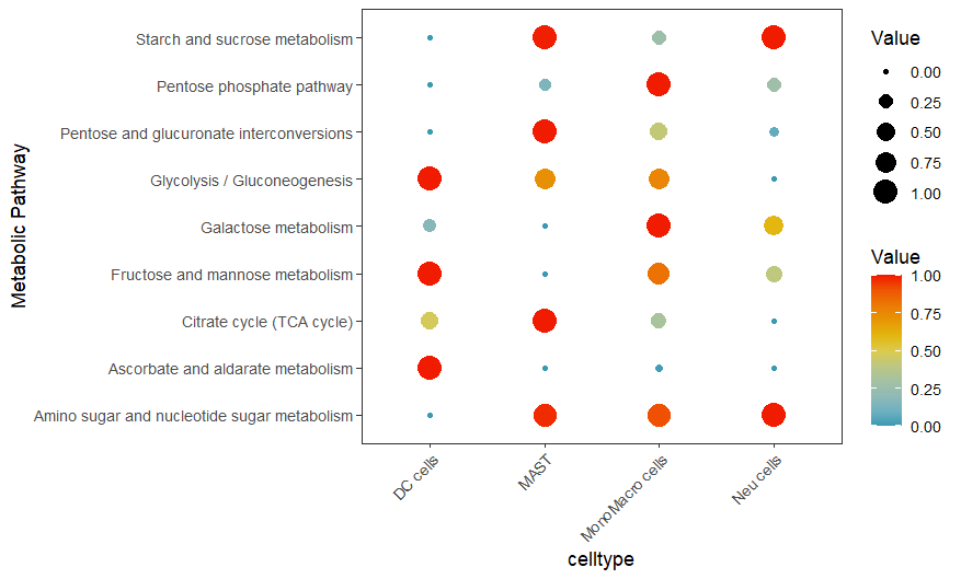 DotPlot.metabolism(obj = countexp.Seurat,