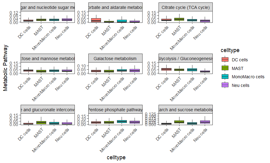 箱体图 (BoxPlot) | BoxPlot.metabolism | pathway: 可传入通路列表;ncol: 每行显示的图表数 |