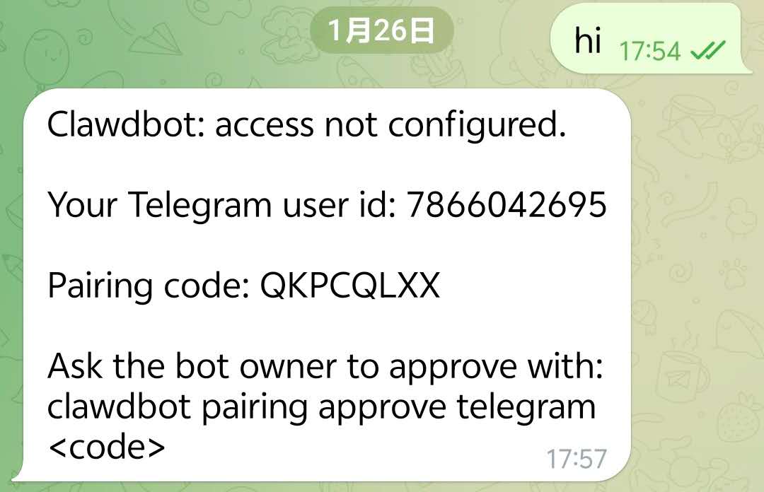 clawdbot pairing approve telegram <CODE>再次发送消息