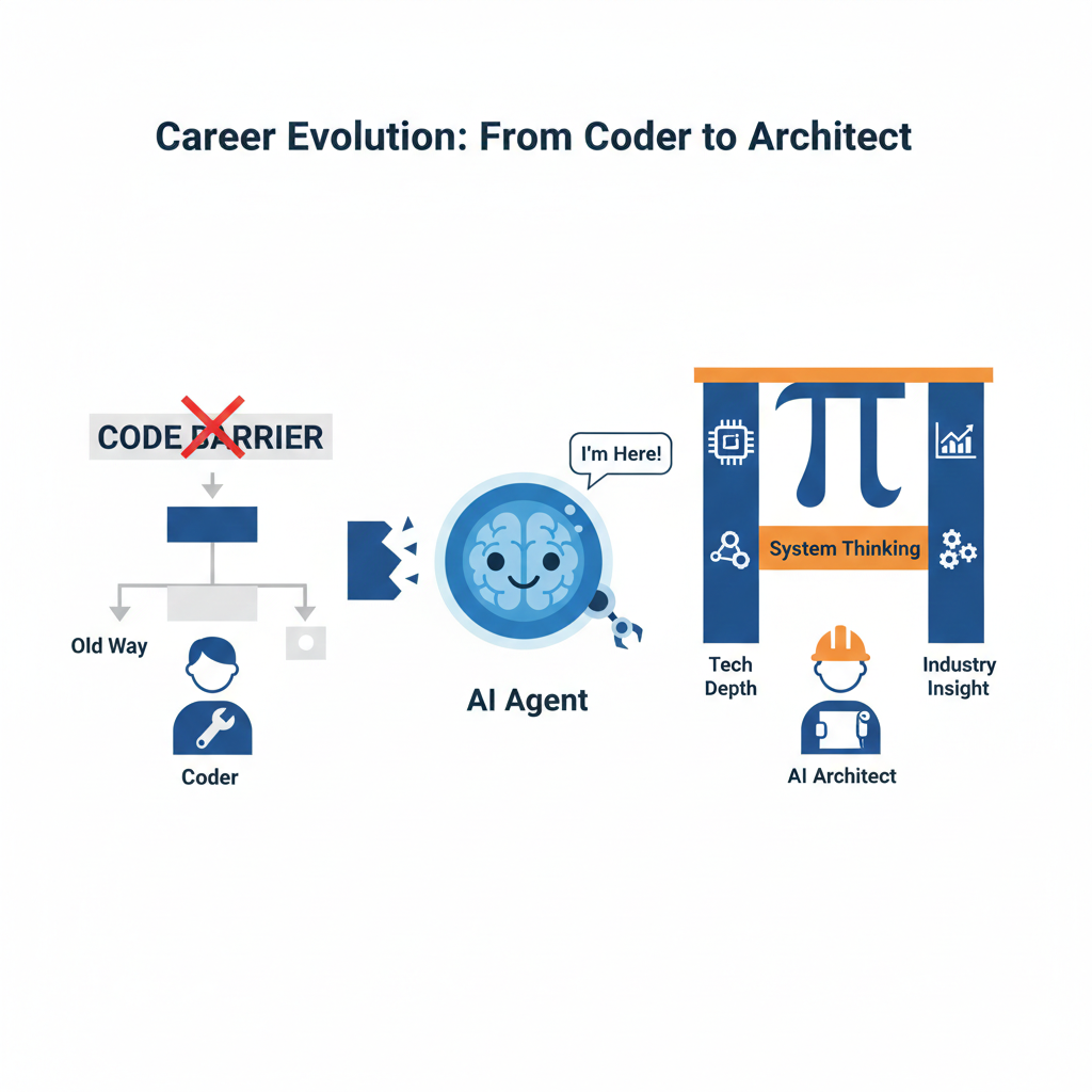 技术发展并非消解 AI Agent 搭建师这一岗位,而是重新定义了专业能力的构成。未来的职业路径不再是单一的技术深度轨道,而是要求从业者构建T 型 /π 型知识结构: