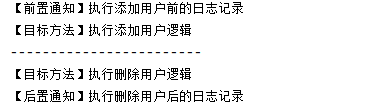 System.out.println("【前置通知】执行添加用户前的日志记录");
