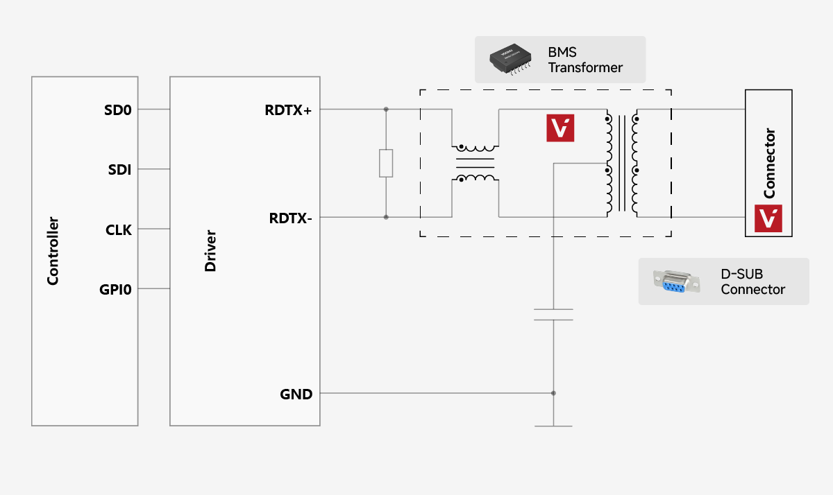 在电池管理系统(BMS)架构演进中,通信拓扑的选择直接决定了系统的可靠性、成本与可扩展性。 隔离SPI主流方案通过电气隔离与差分信号传输构建起抗干扰的"防护墙".隔离SPI通过变压器或电容耦合实现电气隔离,可承受数百伏甚至千伏级的电压差。