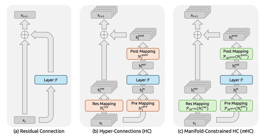 最近Deepseek出了mHC论文[2512.24880] mHC: Manifold-Constrained Hyper-Connections, 旨在把大模型内部残差连接拓宽以增加信息量和表达能力,并给拓宽的连接加上流形约束防止信号不稳定,这个预示着等了10年的Resnet将有新的突破。