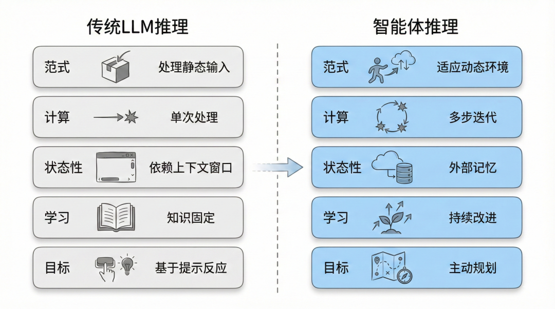 智能体推理代表了AI发展的一个新方向。AI从被动响应转向主动解决问题,从静态知识库转向动态学习系统。