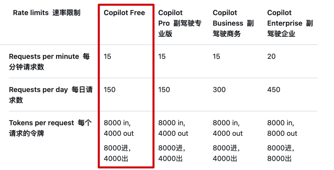 地址:https://docs.github.com/en/github-models/use-github-models/prototyping-with-ai-models#rate-limits