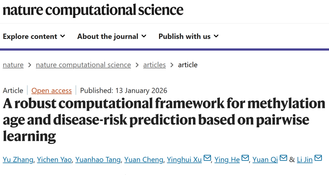 Zhang, Y., Yao, Y., Tang, Y. et al. A robust computational framework for methylation age and disease-risk prediction based on pairwise learning. Nat Comput Sci (2026).