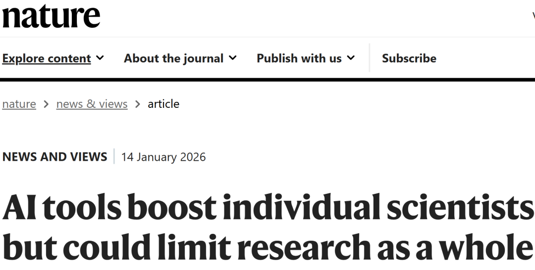 人工智能正深刻影响社会的多个方面,其中也包括科学研究。近期发表于《Nature》的研究指出,在自然科学领域,AI工具的采用一方面扩大了科学家的学术影响力,另一方面却缩小了研究探索的知识空间。