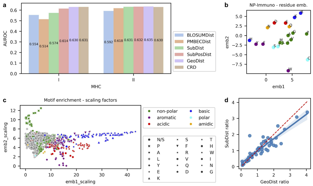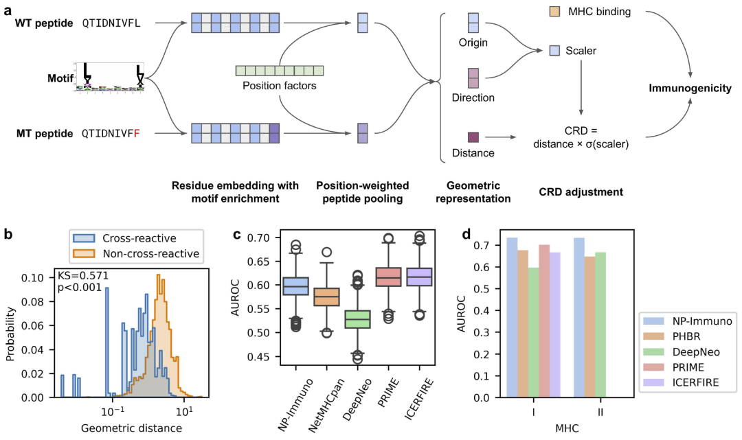 统一嵌入深度学习框架中。该模型在多项内部与外部验证数据集上,与现有免疫原性预测方法相比表现相当或更优,并具备良好的跨 MHC 等位基因泛化能力。