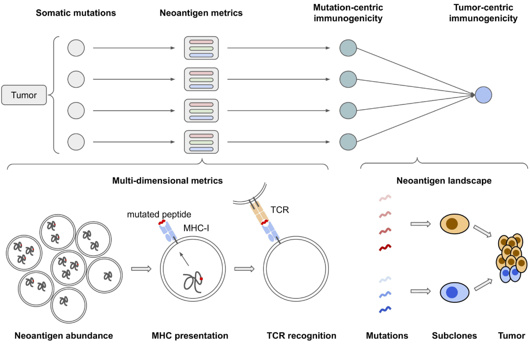 因此,研究人员提出需要一个同时融合免疫原性质量、MHC呈递、T细胞识别与肿瘤克隆结构的综合新抗原评估体系。