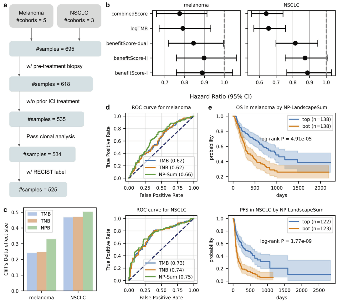 该框架在多个真实免疫治疗队列中进行系统评估,并与 TMB、新抗原负荷及其他克隆模型进行对比。