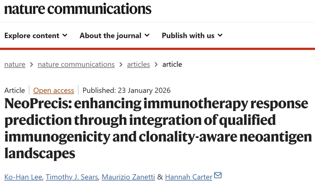 Lee, KH., Sears, T.J., Zanetti, M. et al. NeoPrecis: enhancing immunotherapy response prediction through integration of qualified immunogenicity and clonality-aware neoantigen landscapes. Nat Commun (2026).