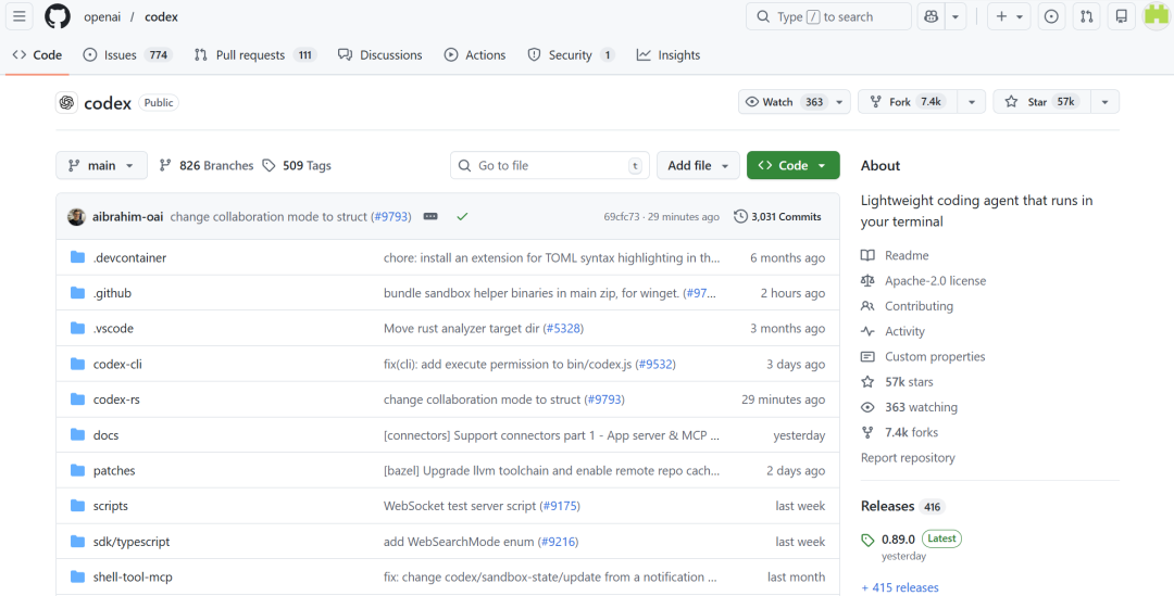 仓库地址:https://github.com/openai/codex