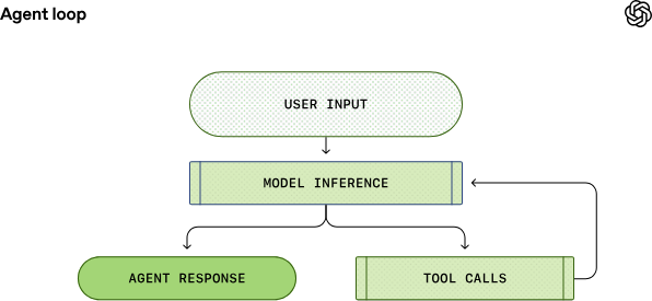 回顾 OpenAI 的第一张智能体循环图,OpenAI 看到在推理和工具调用之间可能存在多次迭代。提示词可能会持续增长,直到 OpenAI 最终收到一条 Assistant 消息,表明该轮次结束: