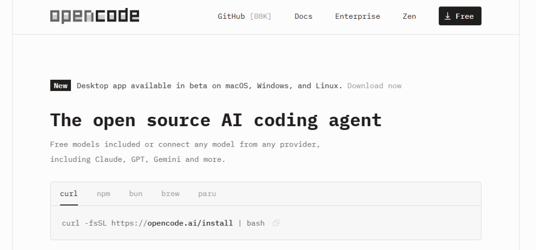 OpenCode 是一款开源的 AI 编程助手(AI Coding Agent),旨在将大语言模型的智能带到你的开发工作流中。它的核心特点是 “模型无关” 和 “本地优先” 。