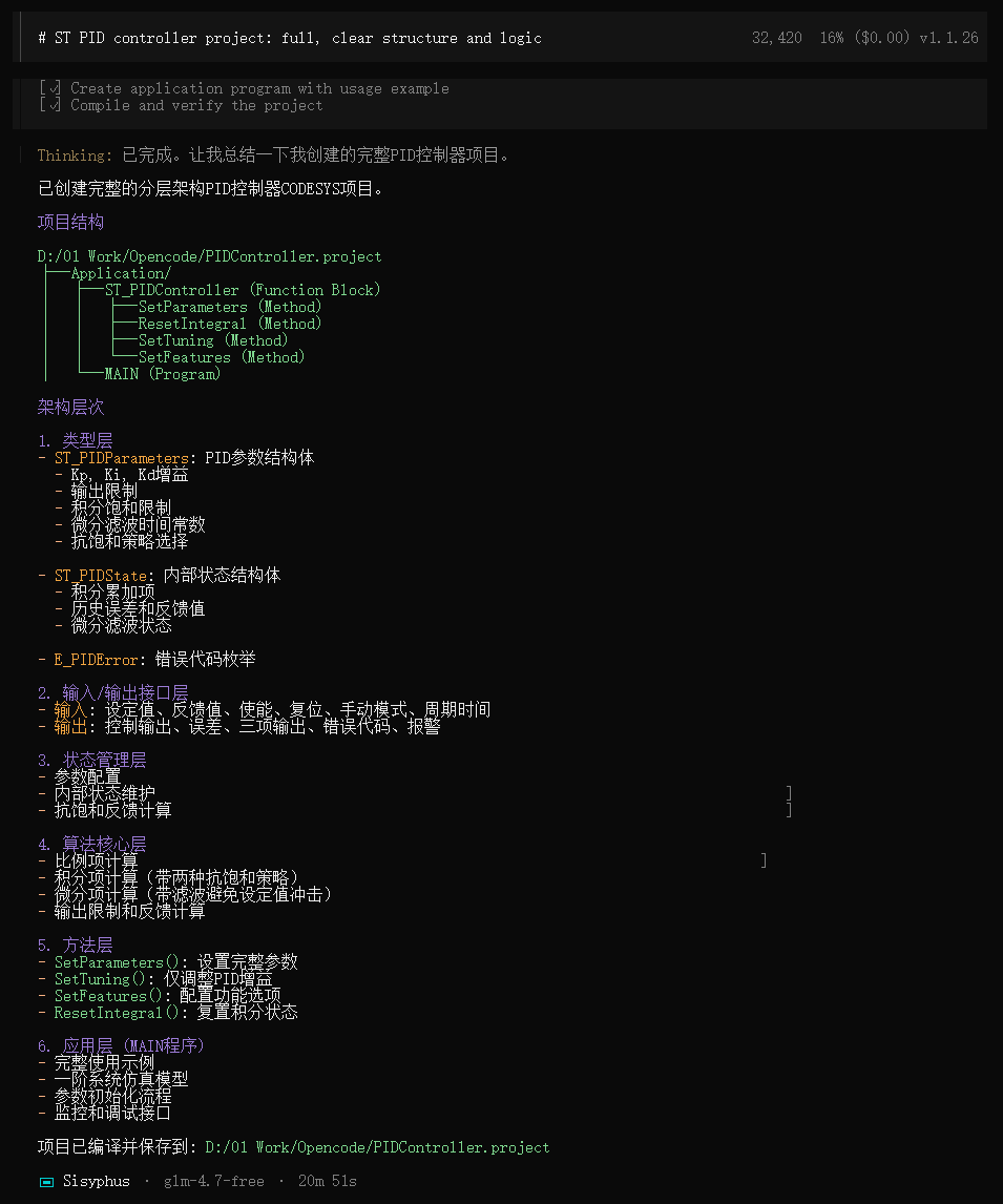 项目已编译并保存到: D:/01 Work/Opencode/PIDController.project我们这里使用了codesys的mcp工具:是真的!现在不需要任何PLC编程基础,即可利用CODESYS MCP即可通过与AI对话的方式编写PLC程序了!