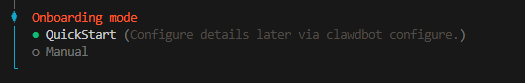 第一个就是快速启动,后续通过clawdbot configure配置信息,第二个就是先手动配置。