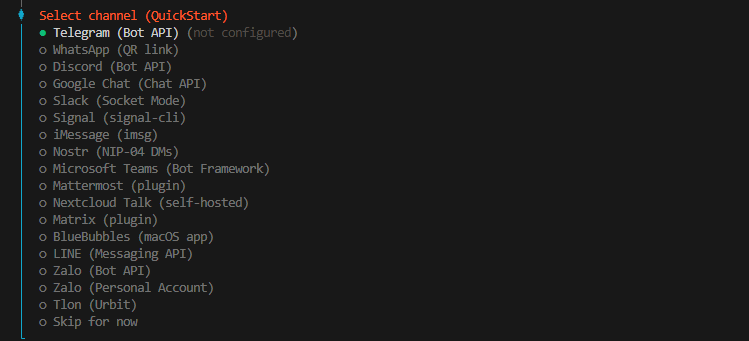 配置好以后,还有一个选择频道,也就是选择用什么聊天软件来跟他对话。