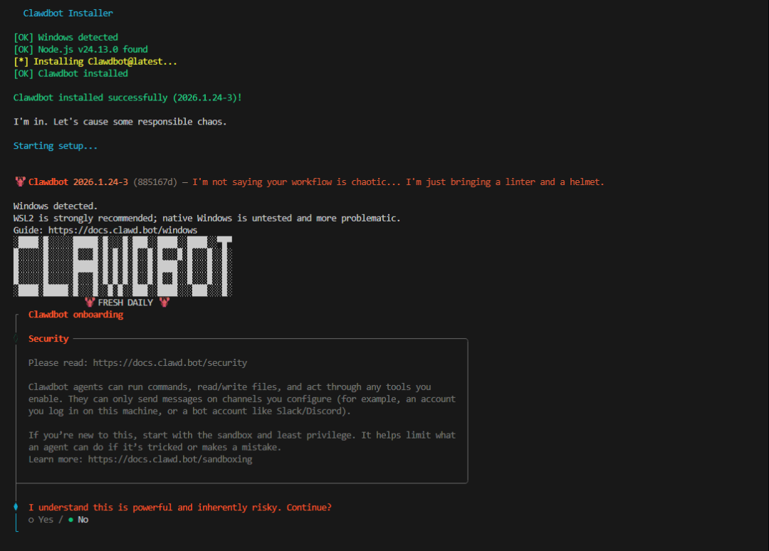 首先教大家先安装一下Clawdbot。