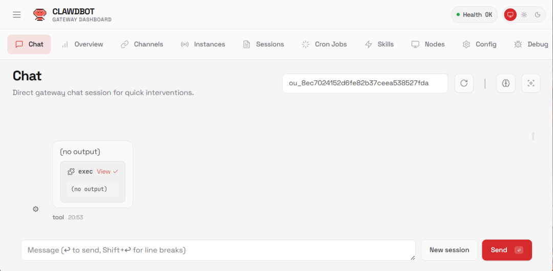 http://127.0.0.1:18789/chat然后就能看到亲切的,小龙虾界面了。