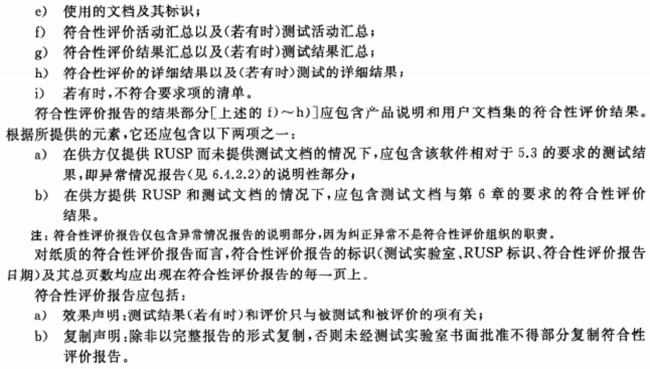 (2)当供方提供测试文档时,符合性评价报告应包含以下内容: