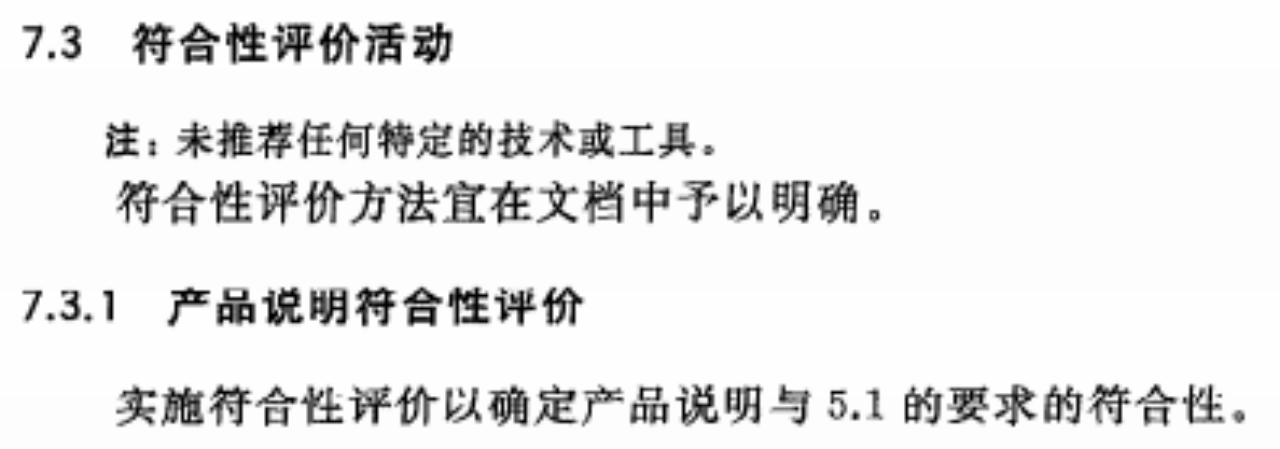 7.3.1 对产品说明符合性评价要求