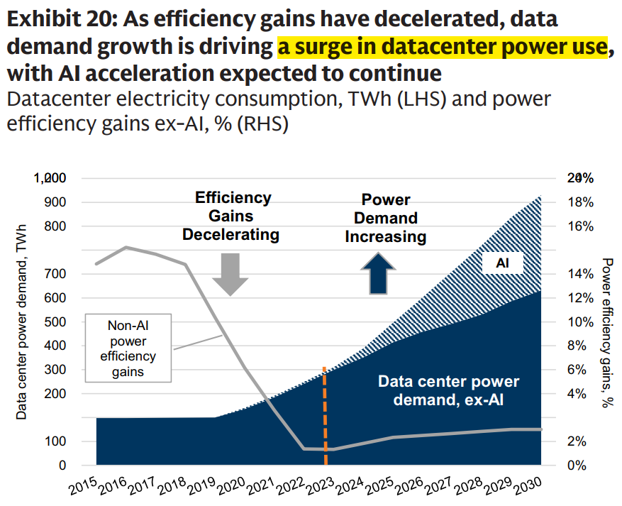 高盛预测,受AI驱动,数据中心电力需求将在2023年至2030年间增长175%。