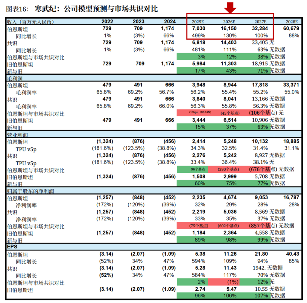 这次报告最吸睛的,无疑是将寒武纪(688256.CH)的评级上调至跑赢大盘(Outperform),目标价从1100直接干到了2000元。