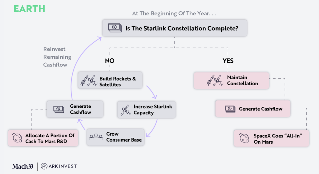 现金 → 建造火箭和卫星 → 创造轨道带宽 → 获取Starlink客户 → 产生收入 → 再投资