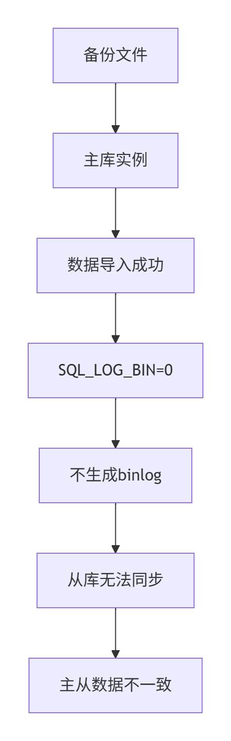 mysql -uroot -p < full_backup.sql导入过程一切正常,没有报错信息。然而问题悄然出现:目标集群的从库没有自动同步这些数据,导致主从数据不一致。