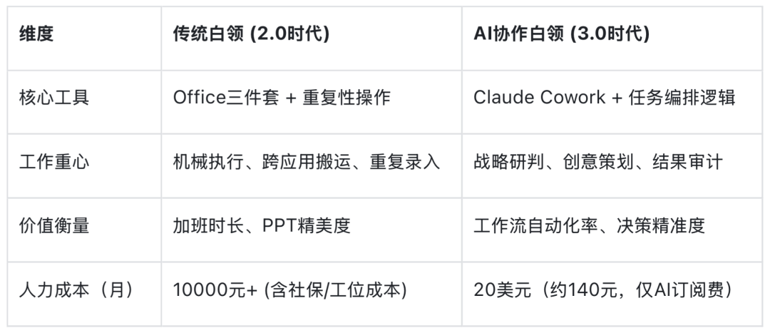 若老板给你 20 美元预算,用 Cowork 替代一位同事,你会选谁?欢迎在评论区留言,共探AI时代职场生存之道。
