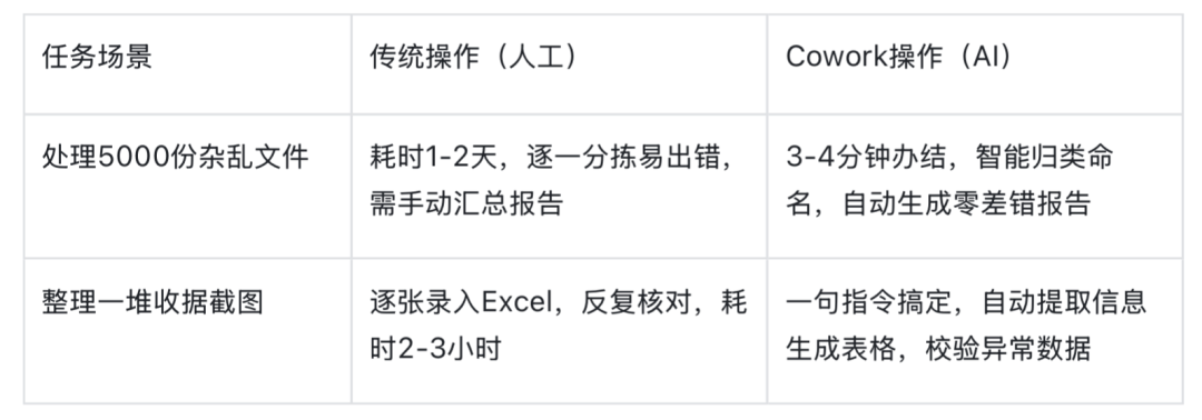 有人质疑“Claude Code早能操作本地文件”,但二者差距恰似“重型斩骨刀”与“空气炸锅”:Claude Code是开发者专属,非专业者望而却步;Cowork 则人人可驭,无需懂底层逻辑,托付文件与需求便有成果。这种普惠跨越,让企业重新审视人力成本。