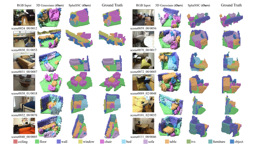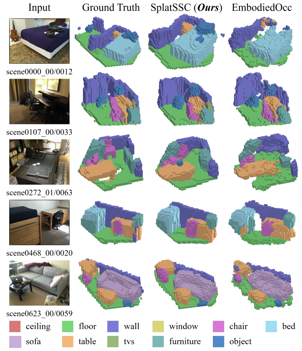 我们在室内场景补全的主流基准数据集 Occ-ScanNet 上验证了 SplatSSC 的性能。