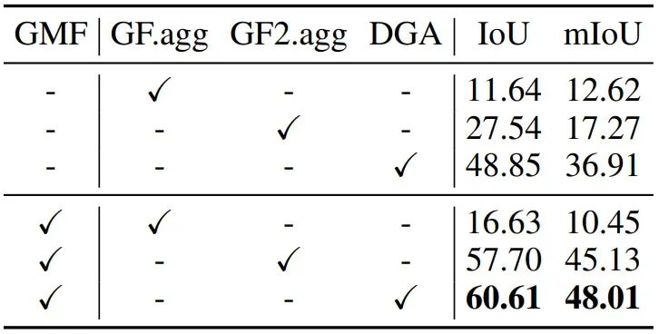 模块贡献与架构拆解:这组实验量化了深度分支(GMF)与解耦聚合器(DGA)的协同效应,证明它们是解决行业痛点的 "组合拳":