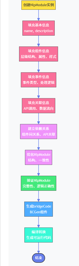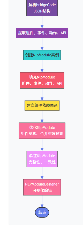 bridge code 是连接设计层和代码层的桥梁,负责将 NlpModule 转换为可运行的代码。以下是 bridge code 的工作原理: