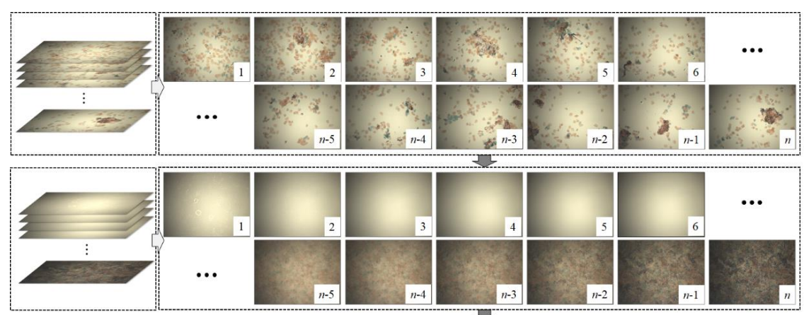 这篇文章应用场景是细胞亮场全玻片成像分析,改善画面暗角或者阴影,只需要采集多帧不同分析场景的图像,无需纯背景图像的就可以校正阴影。