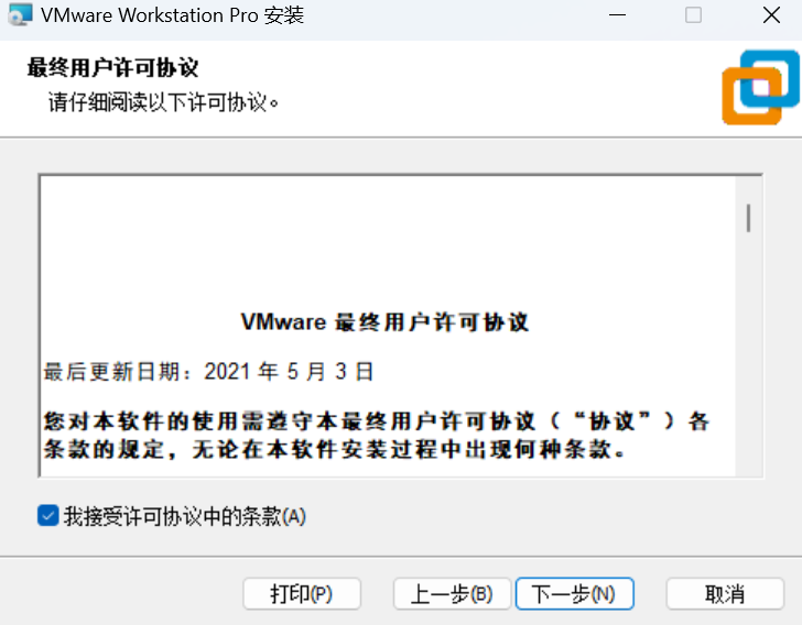 我接受许可协议中的条款,点击下一步